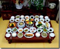 sinsollo(hot pot) and rice cakes. 以蔬菜伴飯、神仙爐及糕點聞名。 |