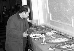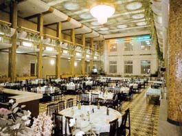 river, Central district, Pyongyang 平壤市,中區,近普通江畔。 Tel.:(850) (02) 48257 It offers more than 120 Korean discs, famous disk are sinsollo(hot pot), BBQ and rice cakes, etc. 以一百二十餘種朝鮮飲食為專門之大眾化餐廳,以神仙爐(火鍋)、烤肉及糕點類聞名之。 |