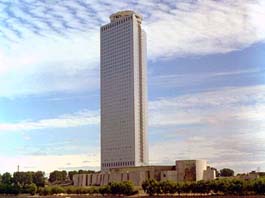 in 1989, 3,500 seats. In the main hall there is an enormous glass mosaic