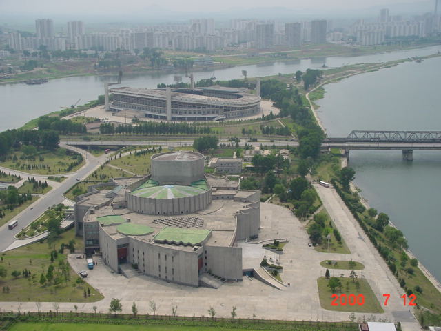 Pyongyang Grand Theatre 東平壤大劇院 beside Rungna Bridge, Munsu Street, Taedonggang district, Pyongyang 平壤市,大同江區,紋繡大街,位於綾羅橋畔