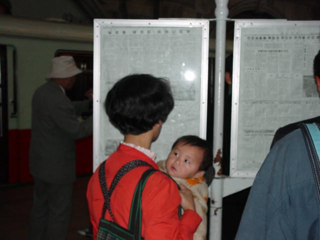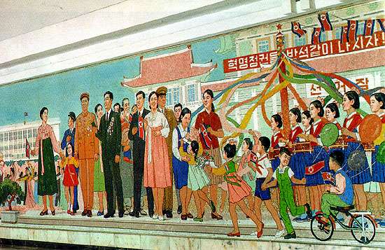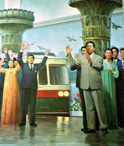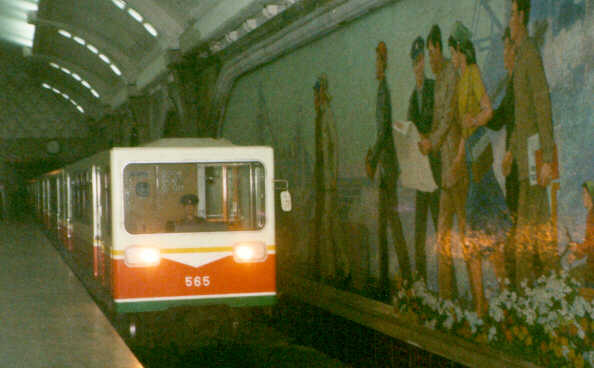 operations and future plans. However, this is very much a museum in the Korean sense: The exposition in the first few halls  covers the childhood of Kim Il Song, followed by his activities in Manchuria, the Korean war and only finally do materials related to the metro itself begin to appear. There are photographs of the underground construction sites and of the workers as well as various kinds of printed materials issued during the subway construction. However, the main exhibits comprise such things as a pen with which Kim Il Song signed the decree for the start of construction, a chair on which Kim Il Song sat while inspecting the construction, a microphone into which Kim Il Song spoke a few words  about the subway or even a special vehicle in which Kim Il Song once travelled between two underground stations. The walls are decorated with photos and pictures on the subject of ¡§Kim Il Song and the workers of the subway.¡¨ The Metro museum also contains several murals related to the construction and opening of the system. The first depicts Kim Il Sung offering ¡§on-the-spot guidance¡¨ during construction; Another shows jubilant citizens celebrating the opening of the Metro extension at Yonggwang station.