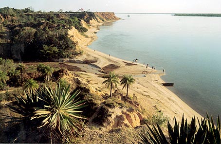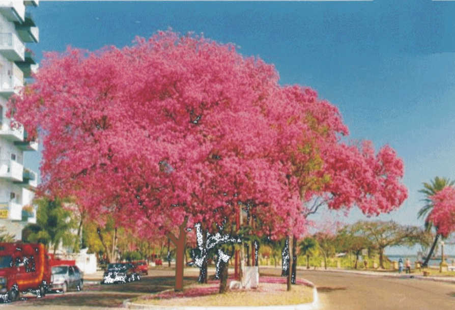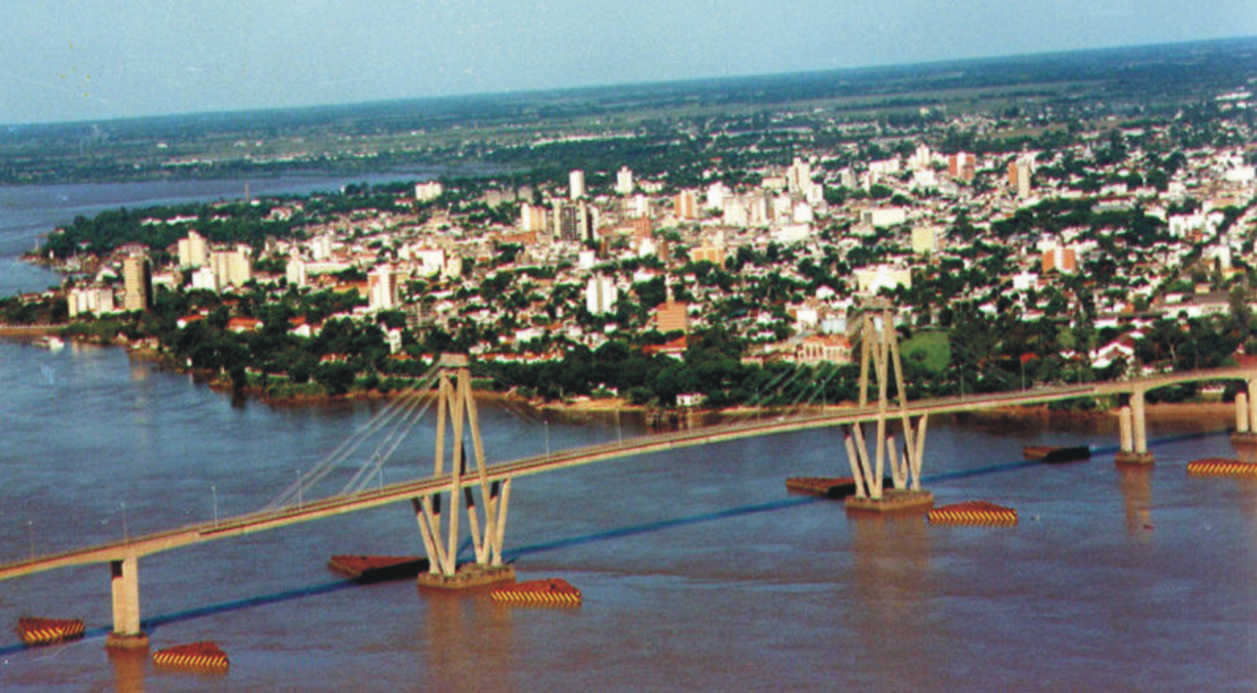 Vista aérea parcial con el puente. Lapachos en flor en la costanera Playas y barrancas a 50 kms.