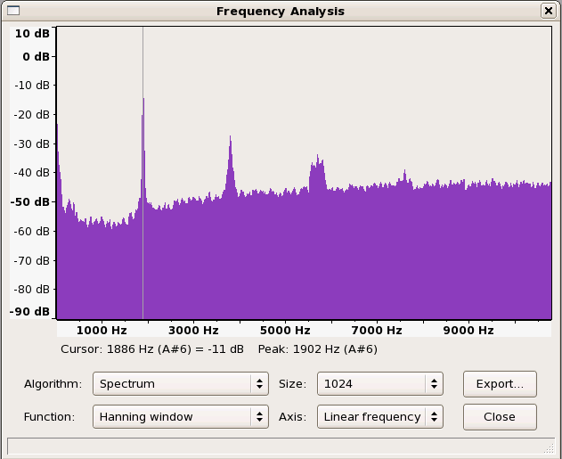 Spectrum are ploted using Audacity. GNU Radio module itself has a FFT plot capability. However, we did not manage to get it to work yet. Therefore all data are imported into Audacity and spectrum plotted there. Due to whatever reason, Audacity does not plot the spectrum properly when high sampling rates are used. The sampling frequencies used during importing are scaled down so that the spectrum are ploted properly. Actual frequencies will need to be scaled up as mentioned in the caption.
