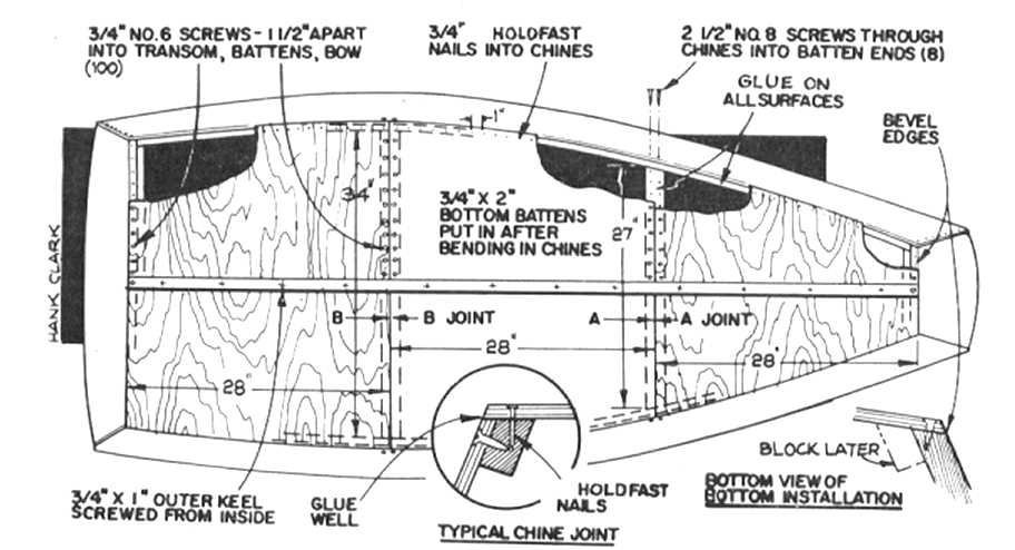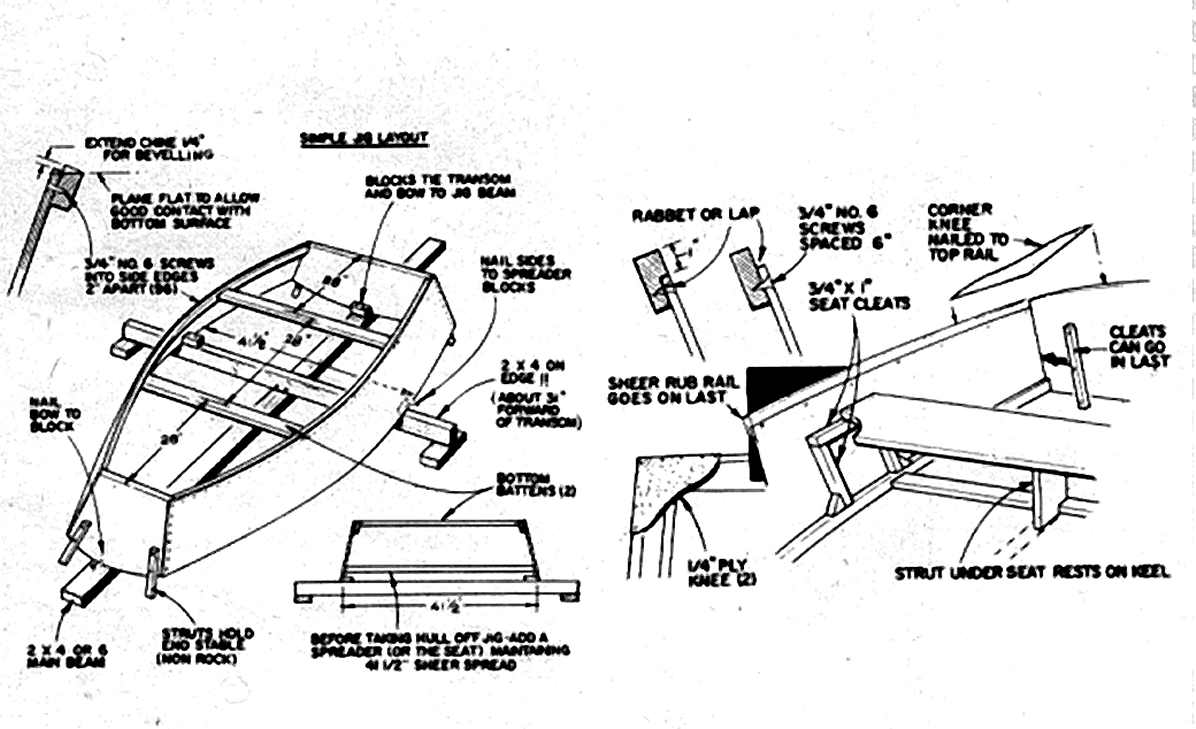 | There's only one critical dimension on page 3. It's 41.5 inches from gunwale to gunwale at its widest point, measured inside the plywood before the rub rail goes on. You can buy a facsimile copy of the original plans and building instructions very cheaply from Mr Donald Goodchild. For details, go to www.dngoodchild.com | |||||||||||||||||||||||||||||