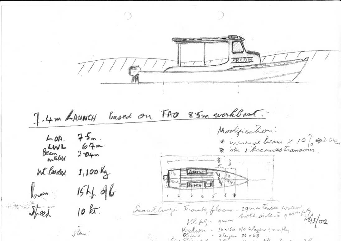 | Click here for an idea for a 7.4m launch derived from an FAO design. | |||||||||||||||||||||||||||||