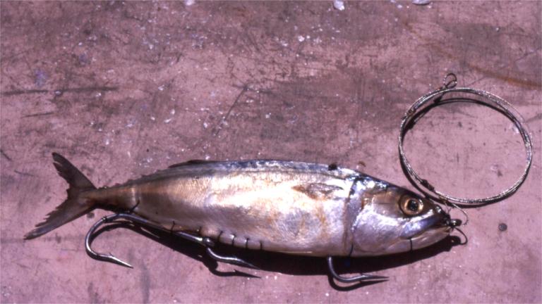 | Yes, we are going to start on the scientific fishing now. Equipped with a new boat, a handline and a few lures, I set out to catch fish. I would troll back and forth in deep water close to likely-looking reefs. Occasionally I would catch a fish, maybe a trevally or a small barracuda. On one never-to-be-forgotten occasion, while using an Abu Killer lure, I had a tremendous strike. Fifty metres or so behind the boat a black marlin, weighing perhaps 100 Kg, reared waist-high out of the water. Then the line slackened. I pulled it in to find that the 40 Kg stainless-steel trace had broken. After that I went to 60 Kg. traces, but never again hooked a marlin, nor even saw one, although we often saw sailfish leaping out of the water. The next step on the path to scientific fishing was meeting David Theobald. Like me, he enjoyed water-sports and had plenty of spare time. We soon became good friends. He and I would go out trolling after work once or twice a week, with no more success than before. We knew there were fish out there -- we often saw large Spanish mackerel rocketing out of the water like submarine-launched Polaris missiles. Other people were catching them. Wewak's most successful fishermen at that time were cousins Richard and Stephen Seeto. They always caught fish and usually caught plenty. David and I would speculate whether they were using oriental magic, or possessed some kind of secret knowledge handed down through generation after Chinese generation. In other words, we were jealous of their success, and we wanted to emulate it. We realised that the Seetos caught fish because they knew a lot more than we did and, even more important, they were serious about their fishing, whereas we would fish when and where it was convenient, using whatever gear was easiest to get hold of and use. Nor did we take advantage of information that others were, it turned out, quite willing to give us. And so scientific fishing was born. We wanted to catch mackerel or, to be more precise, narrow-barred Spanish mackerel, known in game-fishing circles as the tangigue. First, after watching how the Seetos did it, we learnt how to rig baits. When trolling for Spanish mackerel, the Seetos would always use whole fish baits. The preferred variety was the lala, a twenty or so centimetre long relative of the mackerel canned in vast numbers by the Taiwanese. It was readily obtainable fresh from the local market. Three ganged hooks were fed into the mouth of the lala. The distal hook (I'll use the medical term because we are now getting into the medical field, as you will see in a moment) poked through a slit cut under the belly. The slit was closed with a blanket-stitch and the sutures continued forward to close the mouth and tie the eye of the hook to the fish. We found that a stainless-steel post-mortem needle and 2/0 black braided silk were ideally suited to rigging the baits in this way. Don't ask where the needle and thread came from. Before each fishing trip, we would rig up ten or a dozen of these baits and suspend them in the freezer with a length of steel trace attached to each set of hooks. On the boat we would keep the baits in a small foam cooler until they were needed. If we were lucky and the fish were biting -- and they usually were -- we would need to rig up more baits while we trolled. An essential item for our fishing trips was another small foam cooler containing six or eight stubbies of SP. We had a bottle opener and gimballed stubby-holders screwed to the gunwales port and starboard. I was nominated purser or, to be more accurate, barman. |