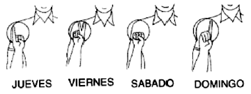 En el caso de "Jueves, Viernes, Sábado y Domingo", únicamente se articulará la letra inicial, dándole el movimiento circular.