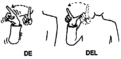 Aun cuando el ideograma correspondiente a estas dos preposiciones se debe efectuar con un desplazamiento de la mano, de izquierda a derecha, en la práctica diaria se acepta el que se realice como se muestra en el siguiente dibujo, con el objeto de dar mayor velocidad a la comunicación
