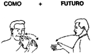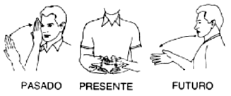 En el lenguaje manual los verbos no se conjugan sino que se ubican en el tiempo agregando, al ideograma del verbo, el ideograma correspondiente a "pasado", "presente" o "futuro".
