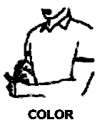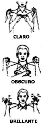El ideograma para "color", se ejecuta cerrando el puño de una mano, simulando la paleta de un pintor, en tanto que el dedo índice de la otra mano representa el pincel que toma un color de la paleta.
