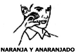 El color "anaranjado", así como la fruta "naranja", comparten el mismo ideograma; éste se ejecuta sobre la mejilla, haciendo alusión a que ahí es donde se siente el sabor ácido de esta fruta.