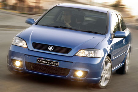 | From CarPoint WHAT WE LIKED � Razor sharp dynamics � Wonderfully strong brakes � Responsive, torquey engine NOT SO MUCH � High-pitched beep when the key's in and a door's open � Average gear change quality � Tyre noise on rough roads First local drive Published 19 May, 2003 OVERVIEW In 1999 the newly appointed chairman of Holden limited, Peter Hanenberger, said he wanted a performance model atop every one of the company's passenger car lines. The Astra SRi Turbo and Astra Turbo Convertible, launched in May 2003, are the final stage in his strategy to inject passion into each of Holden's models. The 3-door Astra SRi Turbo and 2-door Astra Turbo convertible join an already 22-strong Astra line-up. Both models are equipped with a turbocharged 2.0-litre engine producing 147kW and 250Nm. Power is fed to the front wheels via a five-speed manual gearbox; automatic is not an option. Price for the turbo twins is $36,990 for the hatch and $49,990 for the convertible. While the latter looks pretty steep initially, it is only a few grand more than the 108kW naturally aspirated soft top, which is currently Australia's best selling convertible. FEATURES The turbocharged Astras are different to its naturally-aspirated siblings externally by their blacked-out grilles, dark tinted headlamps and sports bumper with integrated fog lamps and air ducts. A wing spoiler dominates the hatch's boot lid, and both models wear unique five spoke, 17 inch alloy wheels with high performance Dunlop tyres. A polished stainless steel tailpipe peeks from beneath the rear bumper, the central B-pillar is blacked out, and body colouring on the side skirt and door handles complete the makeover. Of course, a turbo badge on the rump is dead giveaway. The sporting theme continues in the interior of the Turbos, with matt chrome rings and red indicator needles on the instrument dials, grippy leather sports seats with built-in heaters, alloy pedals and a three-spoke steering wheel. The leather theme also includes the doors. Both turbocharged models add a trip computer, premium sound system, electric windows and mirrors, remote central locking, CD player, cruise control, steering wheel-mounted stereo controls and climate control air conditioning. COMFORT The driver's seat incorporates height, slide and tilt adjustable, which extends the comfy level with standard tilt and reach adjustable steering wheel which easily achieves a comfortable driving position. There are also enough pockets and storage bins in the front for drinks, keys, mobile phones etc, and there's always the glove box. Room in the front seats is sufficient, though the passenger's knee can linger close to the gearshift. Rear head and legroom in the hatch is tight, as is access via the tilting front seat. Boot space is par for the course, and can accommodate three mid-sized briefcases lying down with room to spare on top. The boot area in the convertible is compromised by a partition for the folding roof, both models are equipped with a fold-down ski-hatch in the rear seats. The hatchback's rear seat split fold 60:40. SAFETY The pumped-up cars' active safety features includes a fairly unobtrusive traction control system which can be disabled on the hatch only. The higher performance brakes, disc all round and 28mm bigger than the standard Astra at the front, incorporates ABS (anti-lock braking system). Astra Turbo's electronic stability program integrates traction control and antilock braking to reduce wheelspin or slip and ensure the vehicle maintains stability at all possible times. Passive safety is also impressively good, with dual front airbags, which the convertible adds side airbags. The SRi has height adjustable front seatbelts with pretensioners and force limiters. MECHANICAL Holden's turbocharged twins are powered by the same 2.0-litre four-cylinder engine producing 147kW at 5600rpm and 250Nm of torque at 1950rpm. Both are, of course, front wheel drive and come only with a five-speed manual gearbox. The coupe model tips the scales at 1282kg, the soft top weighs significantly more at 1429kg -- the convertible's missing roof requires more chassis cross-members and reinforcing in other areas to escape scuttle-shake, the rattley bane of all lidless cars. Both have traction control, switchable only in the SRi. Four wheel dics brakes are standard and equipped with the anti-lock braking system. Both have ESP (Electronic Stability Program) which can brake individual wheels to reduce skidding. Both cars have a firm, sporty suspension enginnered by Lotus; firmer on the coupe and more compliant on the convertible -- to suit the slightly different focus of each. Both cars ride on low-profile 17 inch performance tyres around thick five-spoked alloy wheels. COMPETITORS Astra Turbo launches at a time when hot hatch action is, well, hot. Ford added the Focus ST170 to its line-up in April, and the 140kW, Celica-powered Toyota Corolla Sportivo is just around the corner. Astra hatch has a slight ($10) price advantage, and a sizeable power advantage over the Focus. At the time of writing price on the Sportivo hadn't been released. Minor players in the hot hatch field include the Renault Clio RS and Peugeot 206GTi, both of which are cheaper, smaller and less powerful than the Astra. Subaru's Impreza WRX is another possible consideration, though its all-wheel drive chassis and more powerful 2.0-litre engine come with a $7000 price disadvantage. The Astra Turbo convertible really has a market segment all to itself, and is likely to steal sales off its naturally aspirated sibling. Other convertibles from Renault (Megane) and Peugeot (206CC) are cheaper and smaller than the Astra. The Mazda MX-5 and Toyota MR2 are cheaper, the Alfa Spider is dearer, and all are two-seat only. The Peugeot 306 Cabriolet is the only vehicle of comparable size and price, though it falls miles short on power. ON THE ROAD If driving's your game, then the Astra turbo hatch is the pick of the per