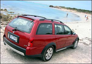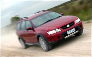 | By Michael Knowling (AutoSpeed Magazine) A thundering 235kW 5.7-litre V8, wheel arch flares, a jacked-up ride height and a kerb weight of nearly 2 tonnes. That might not sound like your average 'soft roader' but that's exactly what the new Holden Adventra represents. The CX8 version (on test here) is the entry-level Adventra that checks in with a retail price of $52,990 plus ORCs. That's not particularly cheap compared to various other soft-roaders, but rest assured the Adventra is a whole lotta car - and not just in terms of its engine capacity and exterior dimensions... As mentioned in our previous test of the top-line Adventra LX8, the big Holden employs an intriguing but highly effective CrossTrac constant all-wheel-drive system. The Adventra ignores a traditional viscous centre coupling and employs three open-centre diffs - one across the front axle, another across the rear axle and a third placed between the front and rear axles. In static conditions, torque is apportioned 38:62 front-to-rear, which maintains the rear-drive bias that the Commodore platform was intended for. Torque split varies whenever wheelspin is detected; the spinning wheel is slowed using the brakes, which redirects torque to the wheels with greater traction. It's a system that delivers astounding stability and handling on the bitumen and on dirt tracks. Unlike a constant AWD system using a viscous coupling, the Adventra turns in responsively and shrugs off any tendency to power understeer on bitumen. Chassis balance also shines through on dirt tracks where the Adventra is virtually unflappable. Irregular corrugations that would send many other vehicles understeering into the shrubbery are no concern whatsoever. The rigours of heavy duty use are accommodated by a tower brace for the front MacPherson struts while the Control Link IRS has been beefed up and features extra bump travel. Ride height has been increased to provide 200mm of ground clearance (which is more than most other soft-roaders) and the ability to handle 20 and 20.5-degree approach and departure angles, respectively. Galvanised underbody protection is another plus. But don't get too carried away with the Adventra's off-road potential - it does have limits. During a trip along the South Australian coastline we tackled a lot of sand of various depths. The Adventra copes very well with firm and wet sand, but get into the deep stuff and the lack of a centre diff lock is obvious. The Adventra's torque split system starts working overtime in the search for traction and the road-car style 225/55 Bridgestone Turanza ER30s don't help matters. In urban duties the Adventra comes together better than you might imagine. The ride is always comfortable - if a bit 'floaty' over undulating country roads - and overall noise levels are acceptable. The steering is firm, although it can become downright heavy during low speed manoeuvres. There is also steering kickback when the loaded outside front wheel hits a chopped surface while cornering. That all-alloy LS1 5.7-litre V8 gives a curious mix of both a lot and a little performance. You must have the standard 4-speed automatic transmission in Power mode to give a performance feel; economy mode resists down-changes under acceleration and the LS1 doesn't have the low-down torque to shift the Adventra's mass with urgency. However, with more than about 3500 rpm onboard, it's a different matter - the Adventra mauls the rest of the crossover competition in highway overtaking and full-bore acceleration. No surprise given a substantial 460Nm of torque at 4000 rpm and a 235kW maximum output accessible at 5200 rpm. Despite its near 2-tonne mass, the Adventra manages to sprint from standstill to 100 km/h in the high 7-second range. A 5.7-litre V8, auto transmission, all-wheel-drive, extra weight and reduced aero efficiency (compared to a Commodore wagon) are the ingredients of horrendous average fuel consumption. In urban conditions we saw up to 24 litres per 100km consumption on the trip computer, but with cruise control set on the open road the average fell to around 14.0 litres of ULP per 100km. Even at its most frugal, however, the Adventra's 75-litre fuel tank gives a poor touring range; a fuel stop strategy is essential for long journeys. Hook a boat or caravan onto the back and, of course, the range between fuel stops will fall even further. The Adventra comes standard with a 1600kg tow mount but there's the option for a 2100kg rated tow package - enough to haul a large trailer boat. Braking performance is up to the job with large ventilated front discs, heavy-duty brake pads and ABS and EBD control. The Adventra interior is a familiar sight for VY Holden Commodore wagon owners. There's ample cabin width and plenty of space for up to five occupants. Cargo space is also generous enough to accommodate weekends away, while the remote pop-up tailgate glass proves quite handy for access to bags, towels, etc. Seating front and rear is comfortable and the driving position is decent. On the downside, the steering wheel is extremely thick-rimmed and the hard plastic spokes are horrible to touch. There's also considerable vibration through the floor and pedals - this was very apparent after stepping out of the new Toyota Kluger, which has a more sophisticated overall feel. The base-grade Adventra CX8 is equipped with standard power windows and mirrors, 4-way electric driver's seat with adjustable lumbar support, trip computer, climate control, cruise control, reversing proximity beeper and a 6-disc in-dash CD with steering wheel controls. There's also a leather steering wheel, handbrake and gear knob, map lights, remote locking, immobiliser and four airbags. The huge rear cargo area features adjustable load tie-down rails, a 12-volt power outlet, several storage compartments and a cargo blind, which has an unfortunate tendency of jumping out of its mounting sockets. A full size alloy spare wheel can be found by lifting up the c