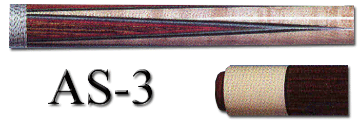 An unusually handsome treatment of the inlaid 4-prong design, with calon ebony over a maple front. Stainless steel joint, white with black spec linen wrap, and ivory cyro buttplate. Designed and constructed exactly like cues costing hundreds of dollars more!