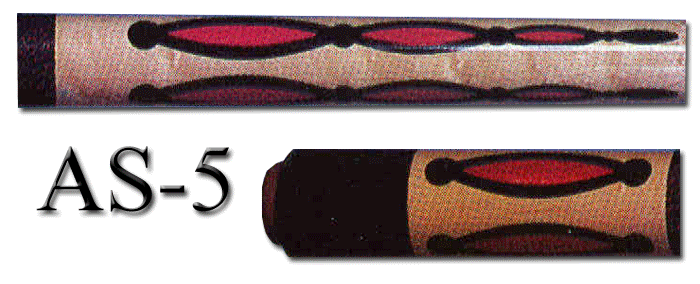 We call it "Chain Point Front", but it's really an exclusive one of a kind design you won't find anywhere else. Maple inlaid with ebony and red veneer, stainless steel joint, black with red spec linen wrap, black cyro buttplate echoing the above design. Not only is it different, it's a real value.