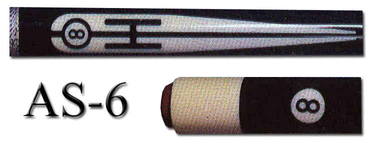 What's the world most popular pool game? 8-ball, of course, perfectly symbolized here. Another classy looking Huebler inlays its ebony with alternate ivory, for a cue that's compatible with your game and the ecology. Stainless steel joint, white with black spec linen wrap, and ivory cyro buttplate. Great for league play!