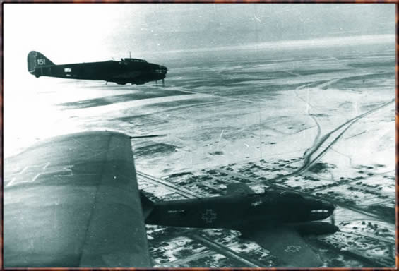 Romanian SM-79B's fly over Stalingrad. Late 1942