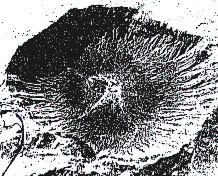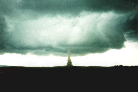 [5/3e] Figure 12 (low): Fully developed tornado drifts away from the crater. Notice that curiosities and attributes of tornados, mechanism of formation of tornados, connections between tornados and UFOs, and also the device for a remote detection of tornados, are described on the web pages which in "Menu 2" and "Menu 4" are marked as tornados.