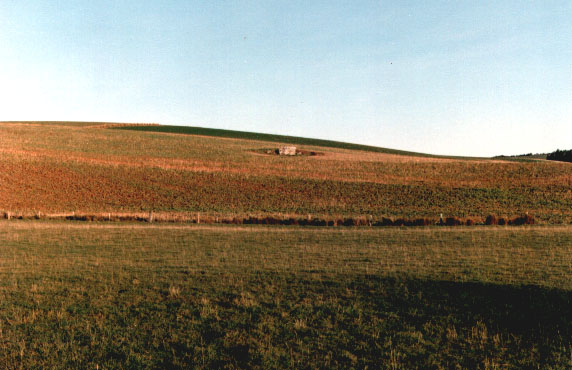 [5/3e] Figure 15 (c): A "China Stone" from Coal Creek near Roxurgh. For some reason this weighting a few tonnes stone was lifter up into the air by a UFO vehicle and deposited near its original position (see imprint from this stone in the grass located in front of it). The UFO left a ring of scorched grass surrounding this stone, which can be seen to the left - this ring is similar to ones shown in [5/3e] Figure 31 B.