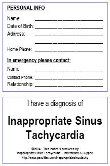 | Click Here for PDF version Personal Medical Information Card A6 Postcard (folded in half) with space to contain your medical information, meds list, allergies, etc. Has information on the back on IST for medical professionals. Suitable to keep in your bag or wallet. |