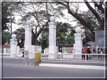 This is the Iloilo National High School Bola-Bola Gate. Between the two tallest columns vehicles pass. The side pathways are intended for, of course, the pedestrian.