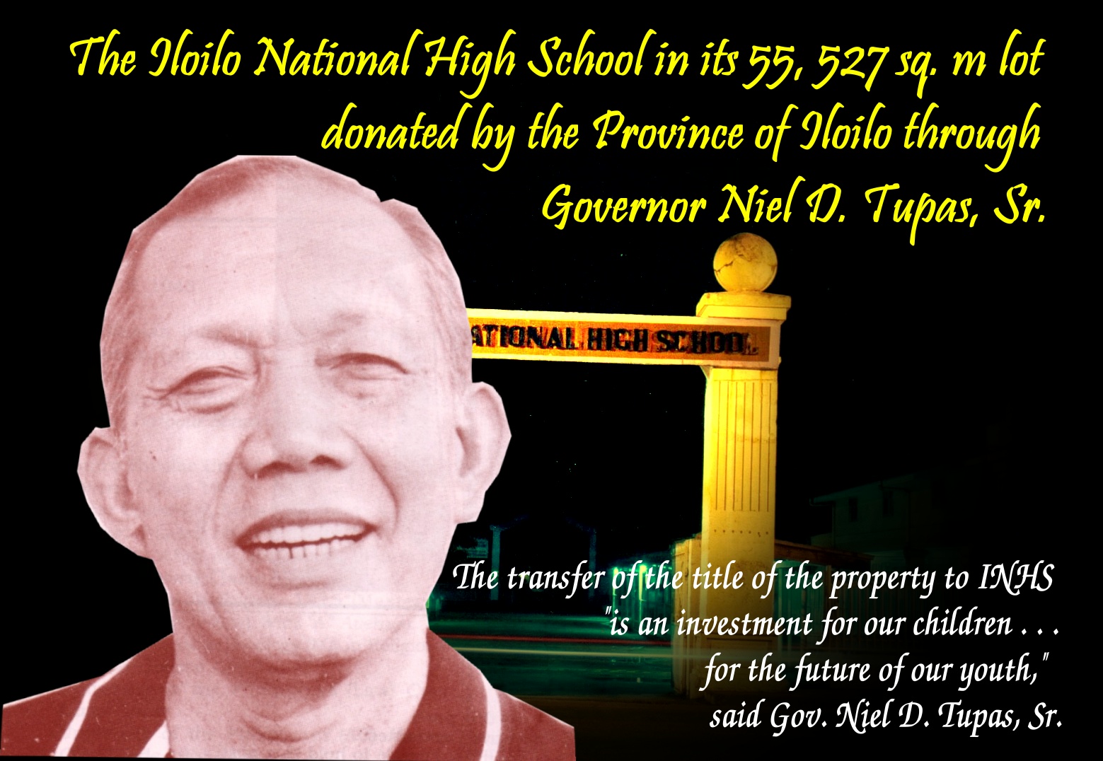 Amidst this trying scenario, one high school stands out for its determined attempts to triumph above the crippling difficulties and hardships that commonly pervade public high schools throughout the Philippines. With its successes in the past 20 years, the Iloilo National High School, the country’s first provincial high School founded in 1902, has become a successful case of “the school that could”, and has served to inspire many who emulate it.