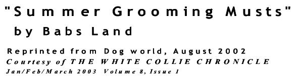 Articles In the Show Ring At Home Working Collies Health Color Chart Collies In Art - Page 1 Page 2 Items for Sale Summer Grooming Tips |