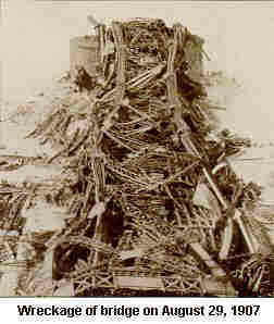 D. B. Haley wrote a letter to the Bridgemen's Magazine about what happened and it was published in the October 1907 issue. Haley was lucky he only had his legs and ankles badly sprained in his fall into the river. Haley had come from Wheeling, West Virginia in June of 1907 to work on the bridge. The work was being done by Local No. 87. The bridge was being built for Canada's transcontinental railroad about seven miles above Quebec City. It was to be the largest bridge of its kind in the world, designed to set a record for a steel cantilever span of 1,800 feet. Construction was being done by the Phoenix Bridge Company. They hired men at 50 cents an hour from all over the United States and Canada. The company would have preferred only non-union men but they found they needed skilled workers for this job. However, many of the workers became dissatisfied. When a man quit, the company would deduct from his wages the amount they had paid for his transportation to and from the work site. On August 6, almost two weeks before the disaster, many of the men had gone on strike because of the poor working conditions. By a vote of 40 to 36 they decided to go back to work on August 10th. Engineers inspected the bridge on August 26th and 27th and noticed that some of the cantilever arms were buckling. None of the men were told about the problem in order to keep them from leaving the job. The General Foreman disregarded the orders of the engineers and told the men to continue working.