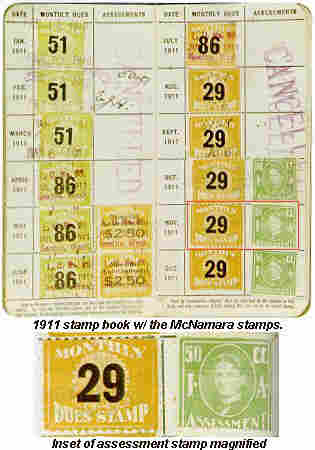 Starting in October, 1911 all the "assessment" stamps issued to the local unions had a picture of McNamara.