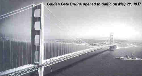 Along with the Brooklyn Bridge, the Golden Gate Bridge is one of the world's best known bridges, and a civil engineering masterpiece. Construction was officially begun January 5, 1933 and the ground breaking ceremony was held on February 26, 1933. The opening of the bridge to traffic was on May 28, 1937, however, the day before was designated "Pedestrian Day" when thousands of people enjoyed exclusive use of the new bridge. Joseph B. Strauss was the chief engineer. The 4,260 foot center span superseded the span of the George Washington Bridge. More than 100,000 tons of steel, 693,000 cubic yards of concrete, and 80,000 miles of wire cable were used in the bridge's construction.