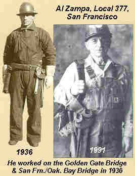 The San Francisco-Oakland Bay Bridge was started in 1933 and completed in November, 1936. Ironworkers from Local No. 377 and Local 378 worked on this Bridge. The construction of the bridge required enough timber to build houses for a town of 15,000 people, and enough concrete and reinforcing steel to rebuild downtown San Francisco. The concrete and steel in the bridge would build thirty-five skyscrapers. This bridge contains fabricated steel equal in tonnage to eighteen percent of all the steel fabricated in the United States in 1933.