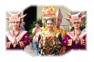 According to legend, once there was a disagreement between the Minangkabau people and the Javanese. Rather than involve themselves in a war, however, which would cause much needless bloodshed, the two peoples agreed upon having a fight between their buffalos. The Javanese had a huge, strong buffalo, fierce, and powerful. On the other hand, the Minangkabau people had a small calf. The Javanese were confident that their huge, powerful buffalo would easily defeat this tiny calf. How could a tiny calf beat a huge, ferocious buffalo? What the Minangkabau did was they took the calf away from its mother, and did not feed it any milk for a several days before the big fight. Just before the fight, they attached sharp, iron knives to the tip of their calf's horns. As the buffalo and the tiny calf were let into the ring, the calf, starving of milk, saw the buffalo, and thought it was its mother. Hurriedly, the calf went to the underside of the buffalo, looking for milk. As it did so, the sharp knives on the calf's horns pierced the under-belly of the huge buffalo. The huge buffalo was killed, and the Minangkabau won the war. This is how the Minangkabau got their name, according to legend, for "minang" means "victory," and "kabau" means "caribou" or "water buffalo" in the Minangkabau language. This is also the source of those buffalo's horn-shaped rooves and hats of the Minangkabau people.