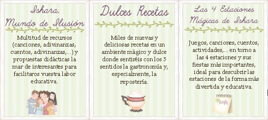 ¡Hola! a todos y a todas, soy Ishara y os doy la bienvenida a mi Mundo de Ilusión. Aquí tendréis la oportunidad de descubrir mis tres páginas web, dos de ellas están dedicadas al mundo de la Educación Infantil y, la tercera, a otra de mis pasiones, la gastronomía. Espero que os gusten: