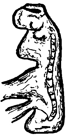A 24/25 day embryo at the alaqa stage, approx. 2 mm long