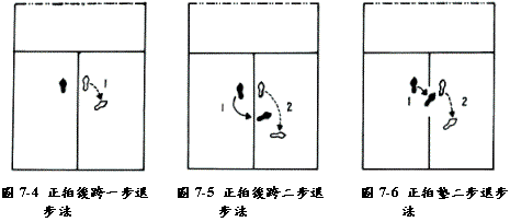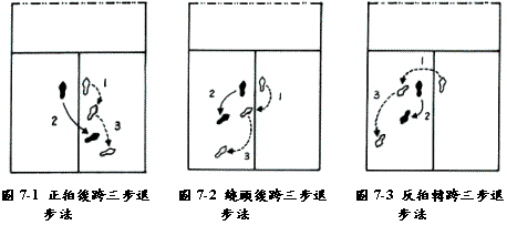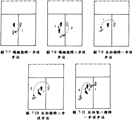 7-2);反拍後退步法則以轉跨三步退為主要步法(圖7-3)。