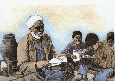 رحم الله أيام سيدنا شيخ الكتاب، فقد كانت الحياة جميلة جمال نفوس الناس، حياة بسيطة من كل تعقيد، يستعد الدارسين للاحتفال بختم القران بشراء قمباز الروزة الأبيض الجديد ويجلبون معهم للشيخ الخبز والبيض، أما الآخرون الذين لم يختموا بعد فانهم يمسكون بقطع الحجر الجيري ويكتبون بها على الأرض أو على الجدران من علمني حرفاً صرت له عبداً |