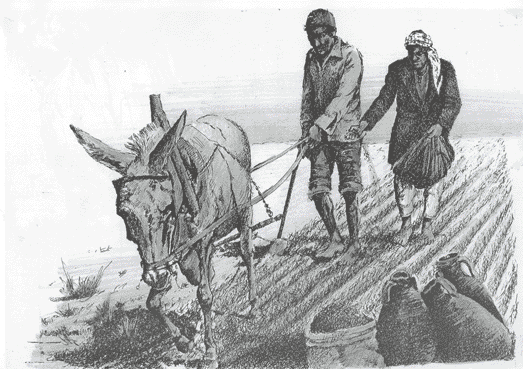 land is well irrigated, the farmer starts ploughing to saw seeds. He makes sure