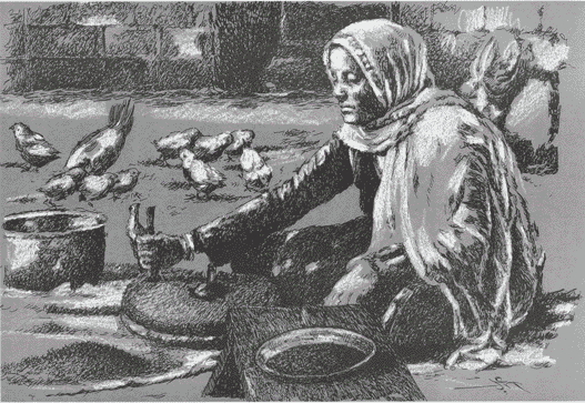 The Quern The grinder uses the quern of the housewife she starts grinding at dawn. The grinder uses the quern to grind the wheat. This task is one of the responsibilities of the housewife |