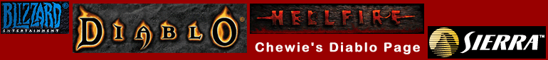 Diablo is a computer game by Blizzard Entertainment, released in late 1997. It was and still is my favorite game of all time. Any game that can hold my attention for over 4 years is simply amazing. It's official expansion, Hellfire, was made by Sierra.