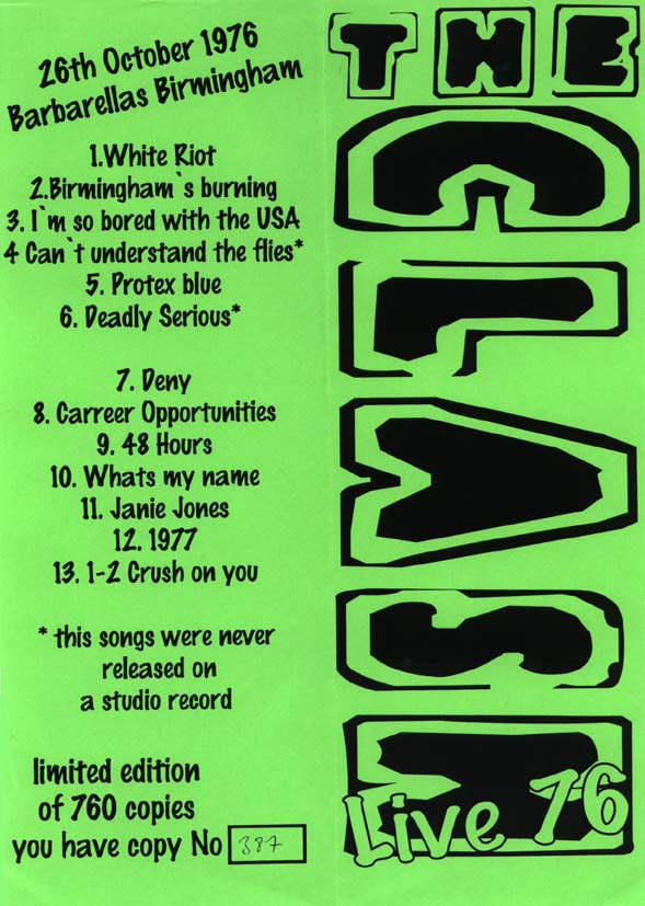 SIDE A: White Riot / London's Burning / I'm So Bored with the USA / How