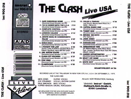 Palais / Koka Kola / I Fought the Law / Jail Guitar Doors / Clash