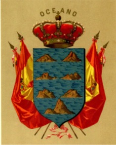 donde aparecen las siete islas sobre campo azul rodeando a un escusón con las armas de