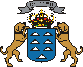 armas siete islas en medio de un mar y con una letra abaxo de oro que dice OCEANI,