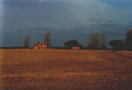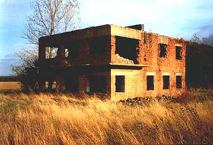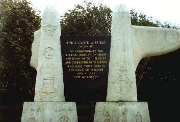 Remains of the control tower (top), the memorial after being damaged. (NOTE: The King's Cliffe Memorial was damaged in 1991 and later repaired by the Memorial Trust from private donations plus funds they raised. Originally thought to have been vandalised, it was appearantly hit by a u-turning vehicle towing a trailer.) |