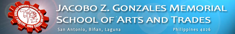 The Jacobo Z. Gonzales Memorial School of Arts and Trades (JZGMSAT) is a TESDA administered school mandated to provide trade technical curriculum for high school graduates, post secondary trade curriculum and trade opportunity for the province of Laguna. It was established by virtue of Republic Act 1905 sponsored by the late Congressman Jacobo Zarraga Gonzales in 1960.