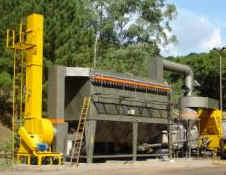 da usina de asfalto através do exaustor passando pelo filtro que retém os