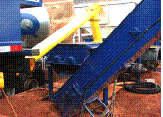 O pó depositado no fundo do filtro é então transportado para fora deste, através de um transportador helicoidal (Fuso) sendo conduzido novamente para o interior do secador incorporando-se a massa asfáltica.