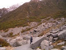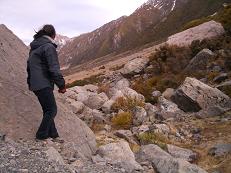 We arrived in Mt. Cook village just after lunchtime, ate a quick meal of chicken pie and cheesy tomato panini, and headed for a trail to a lookout point. We were blessed with great weather once again- you'd think it would be freezing in glacier country, but it actually wasn't too bad.