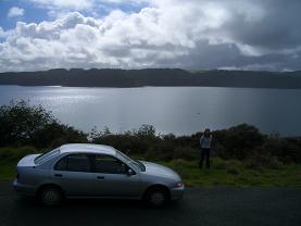 To make up for missing the big tree, we stopped over at the Kai Iwi Lakes, a trio of lakes on the western side of the North Island. We took a quick stroll down to the shores of the first lake, which had a distinct aroma of wild mushrooms. I'm not really sure where that came from -- we didn't spot any mushrooms anywhere. It's funny how many incredible scenes of water there are here. Some type of lake or bay view is literally around every corner.