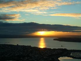 A few hours later, we finally spotted Auckland in the distance, marked quite pointedly by the Sky Tower, a structure similar